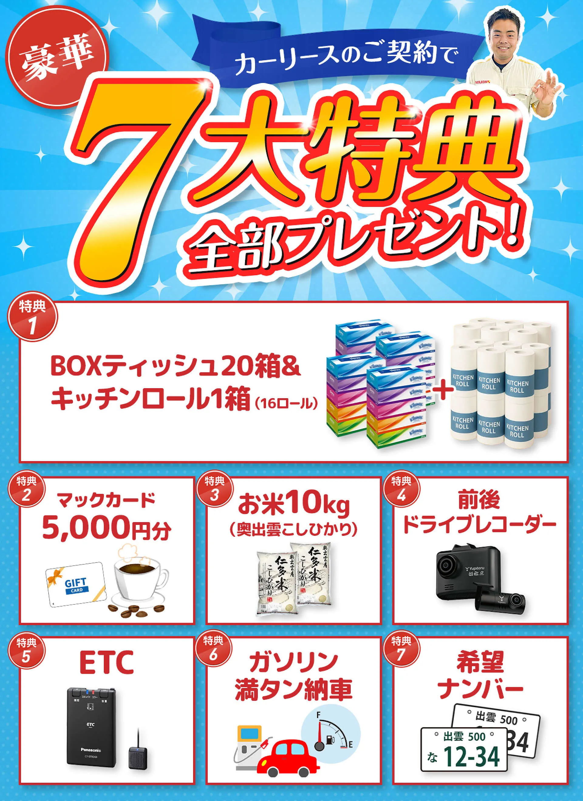 スーパー乗るだけセットをご成約いただいた方に、豪華7大特典をプレゼント!