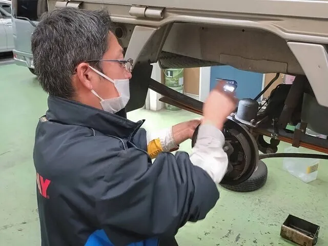 併せて、ブレーキシューやドラム内部の清掃、ブレーキフルードの状態確認を行い、正常な制動力であることを確認しております。